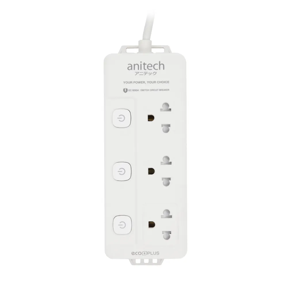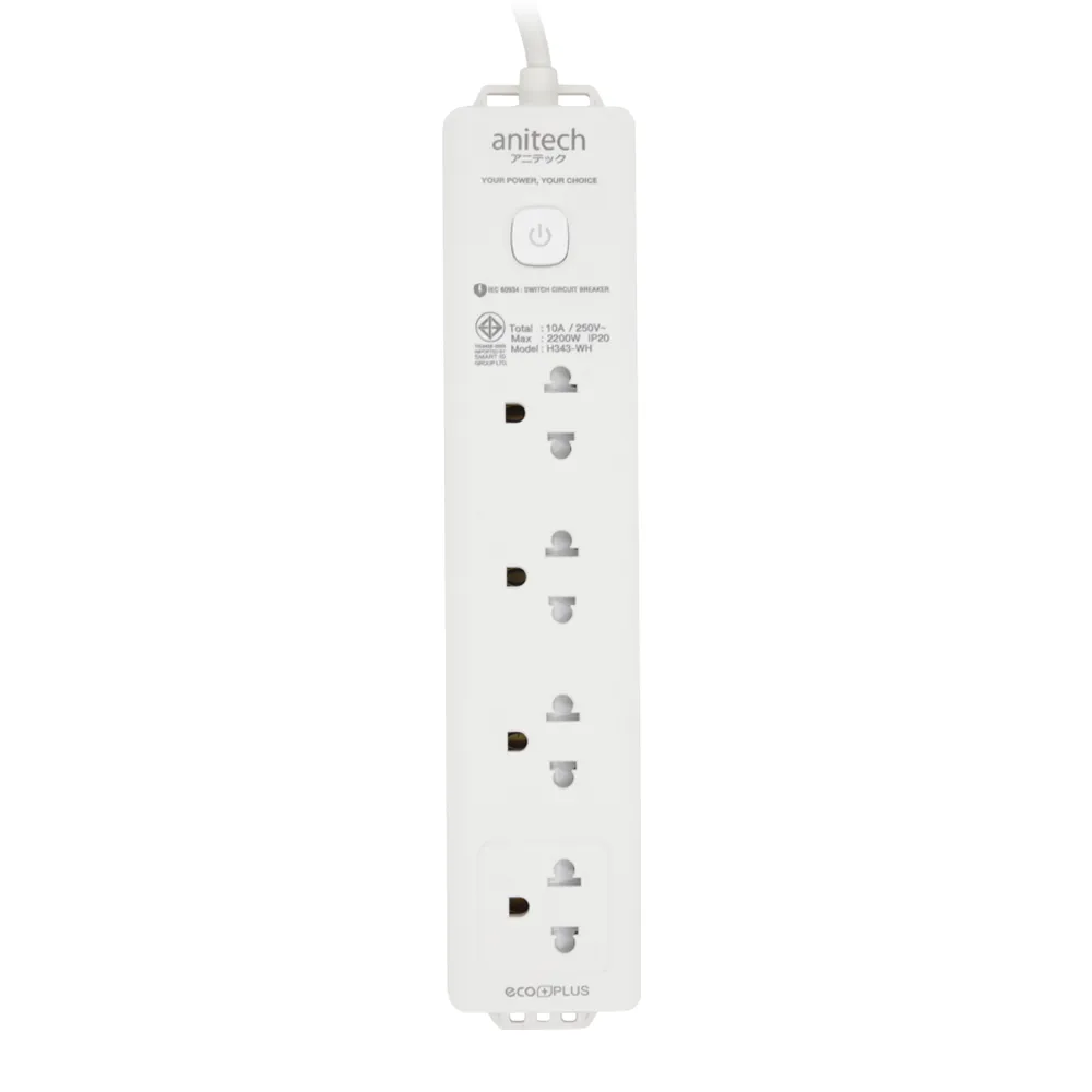 Anitech ปลั๊กไฟ 3 ช่อง 1 สวิตซ์ รุ่น H533-ON รองรับกำลังไฟสูงสูงสุด 2200 วัตต์ 10 แอมป์