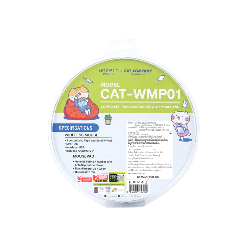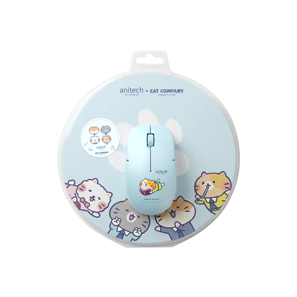Anitech ชุดคอมโบเซ็ตเม้าส์ไร้สาย+แผ่นรองเม้าส์เม้าส์ไร้สาย รุ่น CAT-WMP01-BL DPI: 1200 เชื่อมแบบ USB