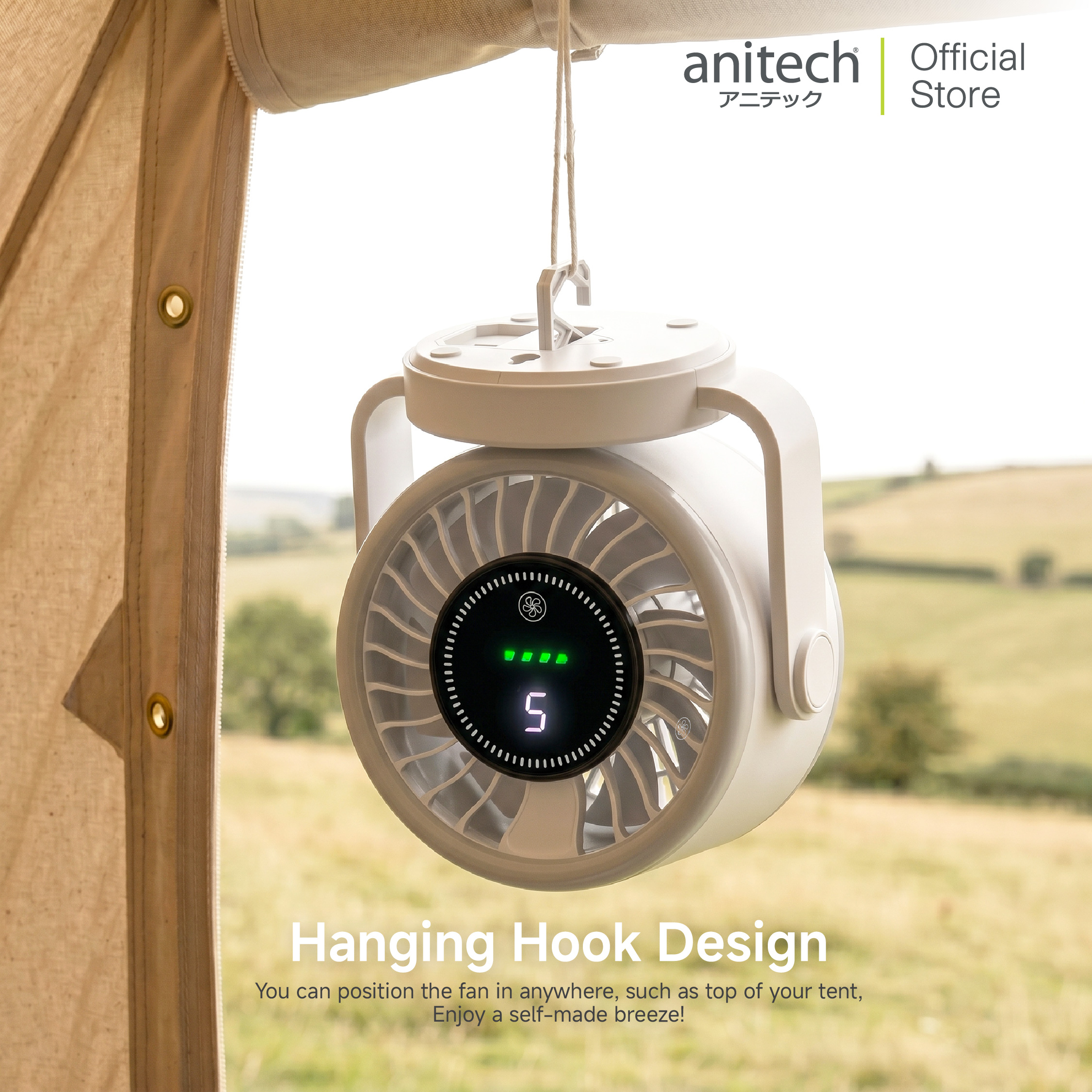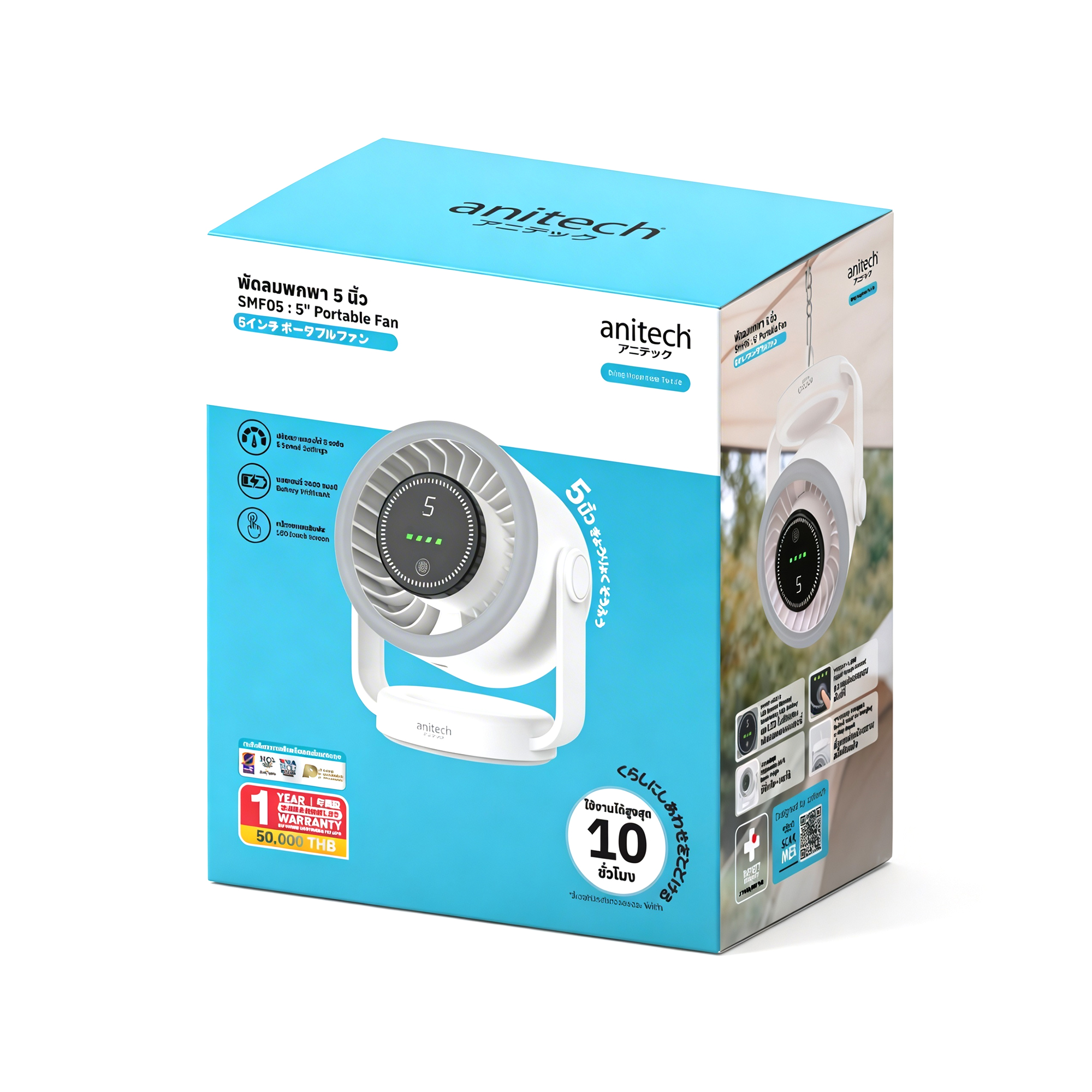 Anitech พัดลมพกพา 5 นิ้ว รุ่น SMF05 แบต 3600mAh ปรับลม 5 ระดับ ก้ม-เงยได้ 90°