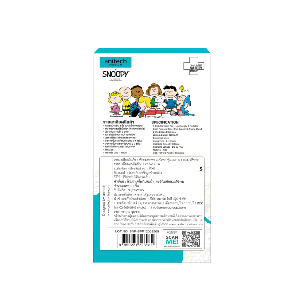 Anitech พัดลมพกพา SNP-SPF1200-WH ปรับได้ 3 ระดับ ใช้งานประมาณ 2-4 ชั่วโมง
