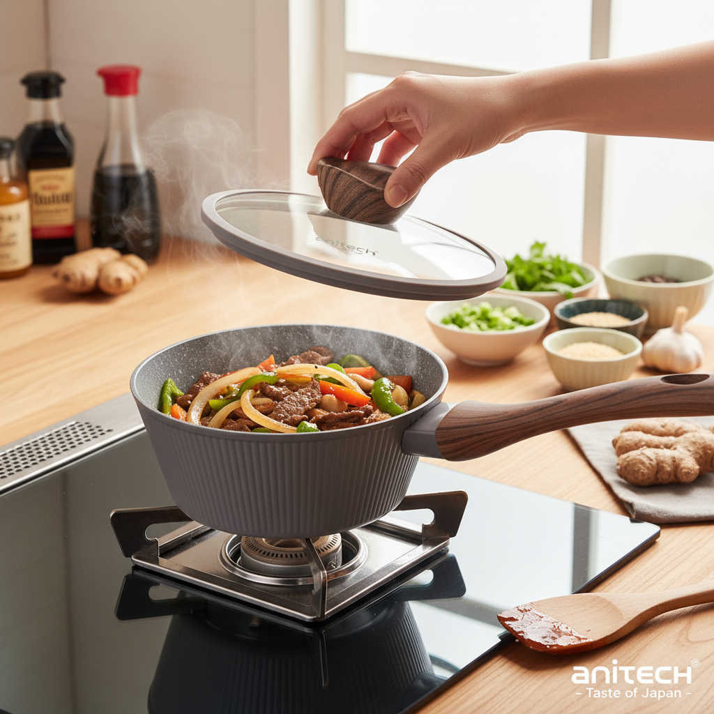 – ก้นหม้อหนา 3 มม. เก็บความร้อนดี และช่วยให้ความร้อนกระจายตัวสม่ำเสมอ