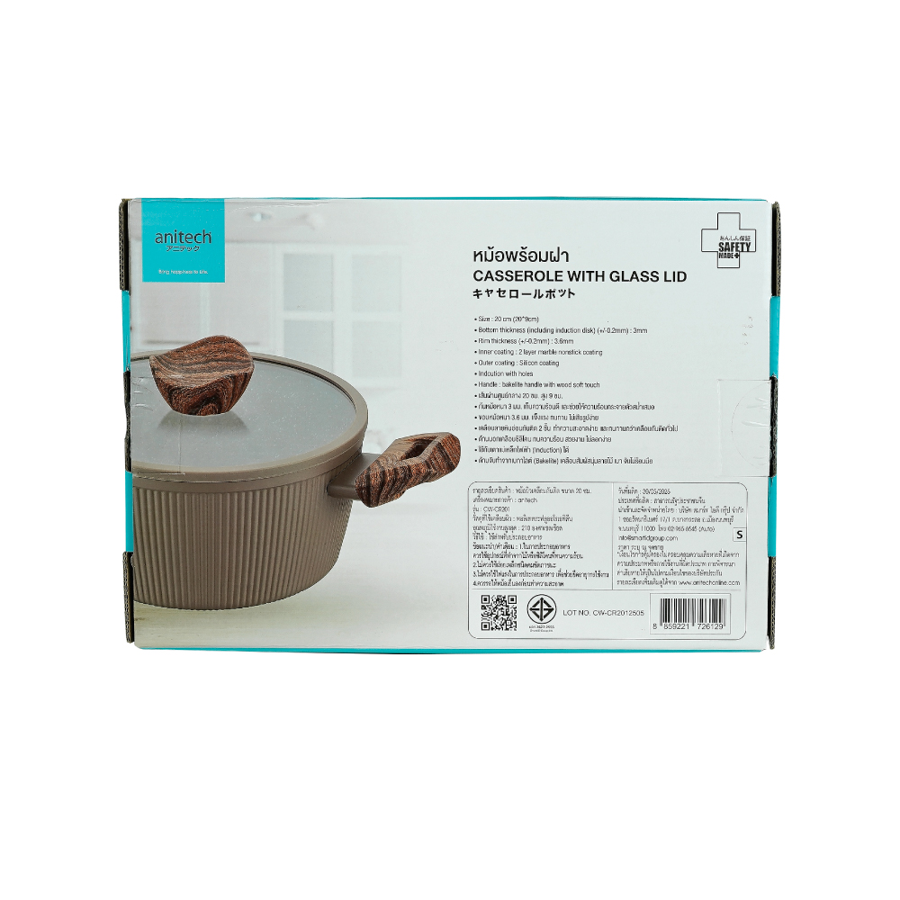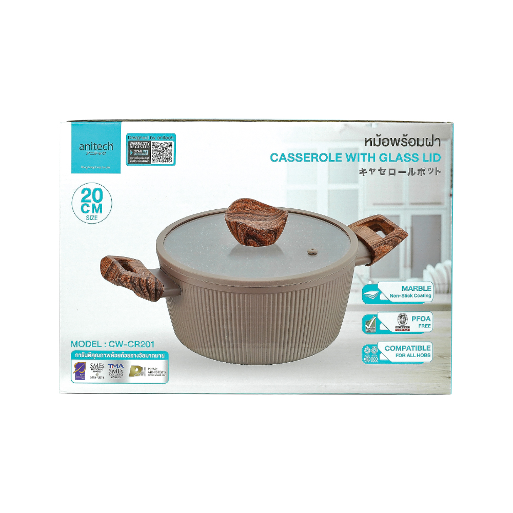Anitech หม้อพร้อมฝาแก้ว รุ่น CW-CR201 ด้านนอกเคลือบซิลิโคน เก็บความร้อนดี และช่วยให้ความร้อนกระจายตัวสม่ำเสมอ