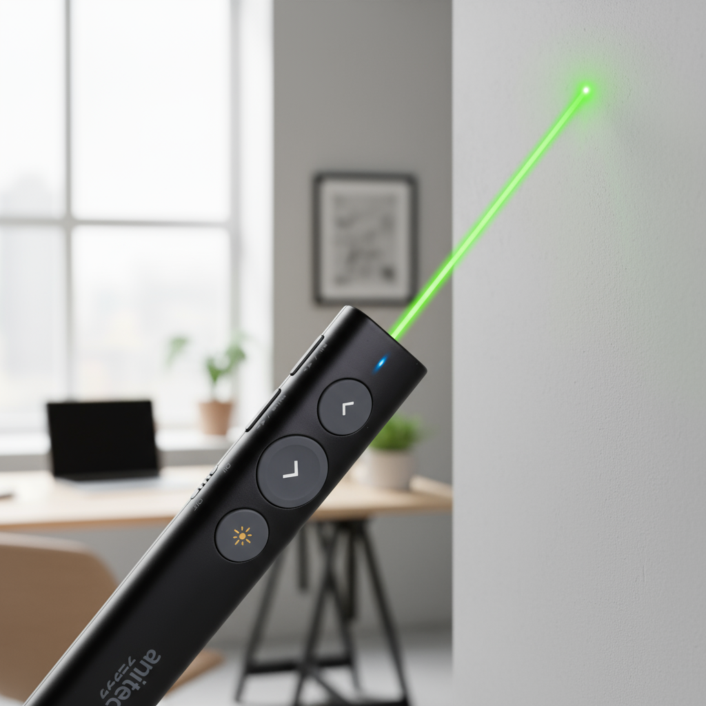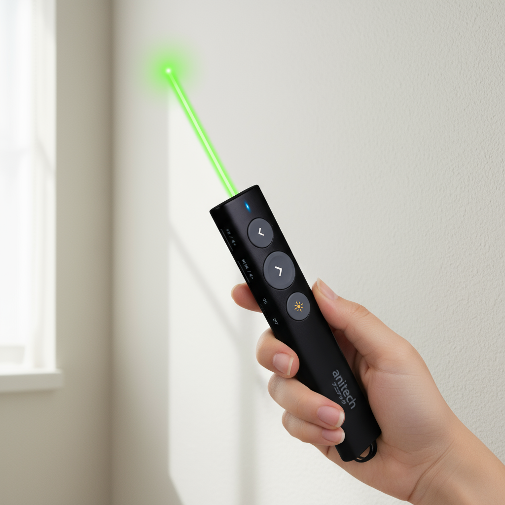 Anitech เลเซอร์พ้อยเตอร์ ไวเลส แสงสีเขียว รุ่น A92 ใช้ได้กับสมาร์ททีวี/จอดิจิตอลต่างๆ ระยะการแสงไกล 100-200 เมตร