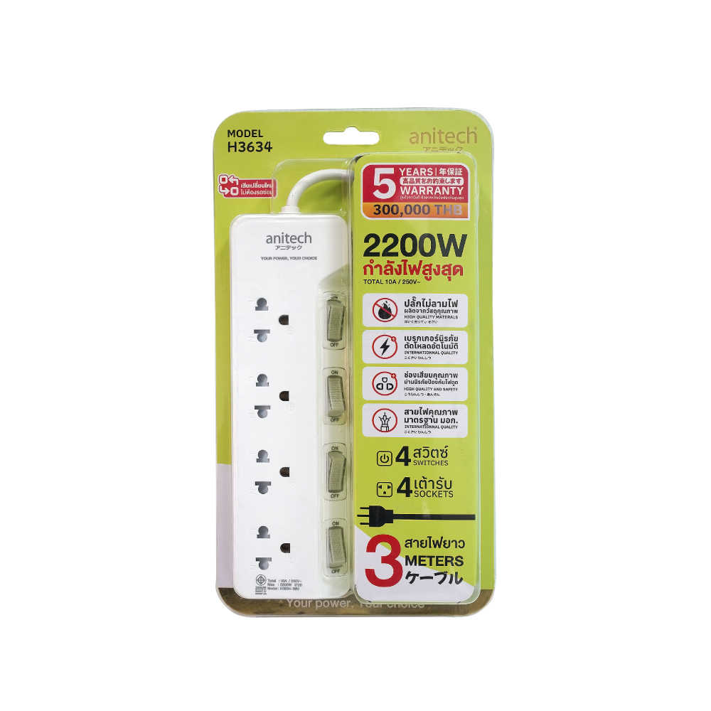 – รองรับกำลังไฟสูงสูงสุด 2200 วัตต์ 10 แอมป์