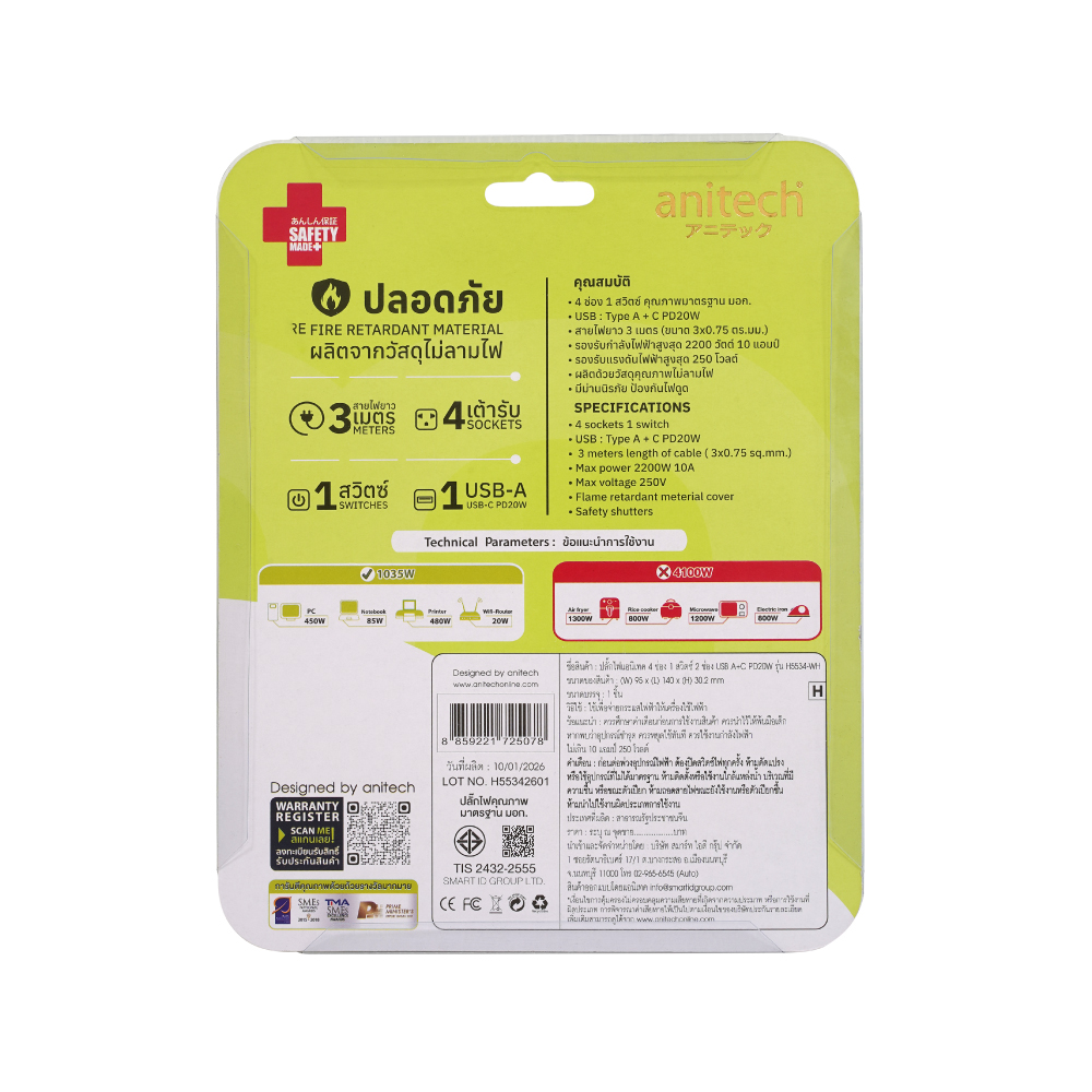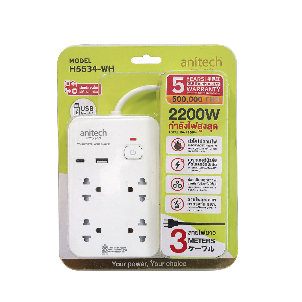 • รองรับกำลังไฟสูงสุด 2200 วัตต์ 10 แอมป์