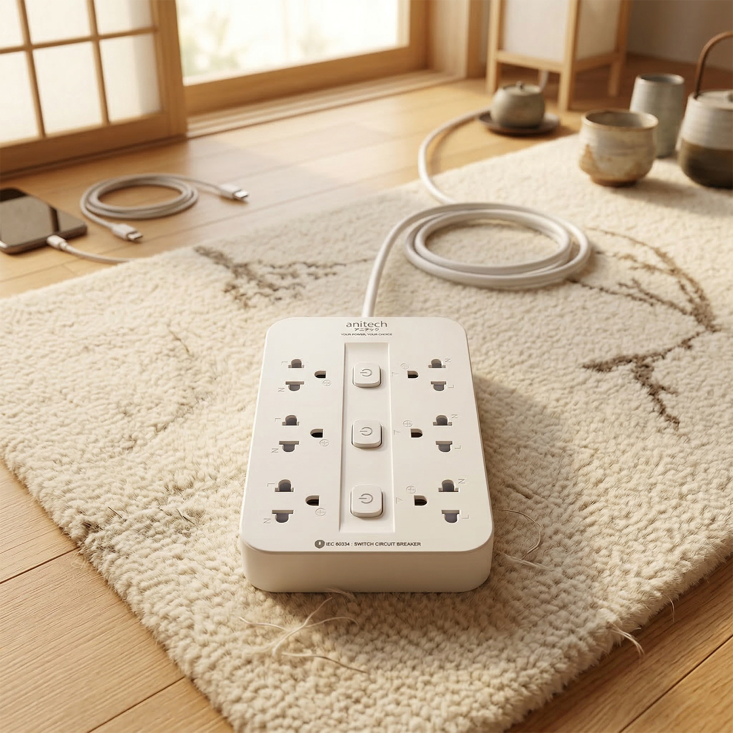 Anitech 6 ช่อง 3 สวิตช์ รุ่น H536-WH สายยาว 3 เมตร กำลังไฟ 2200 W