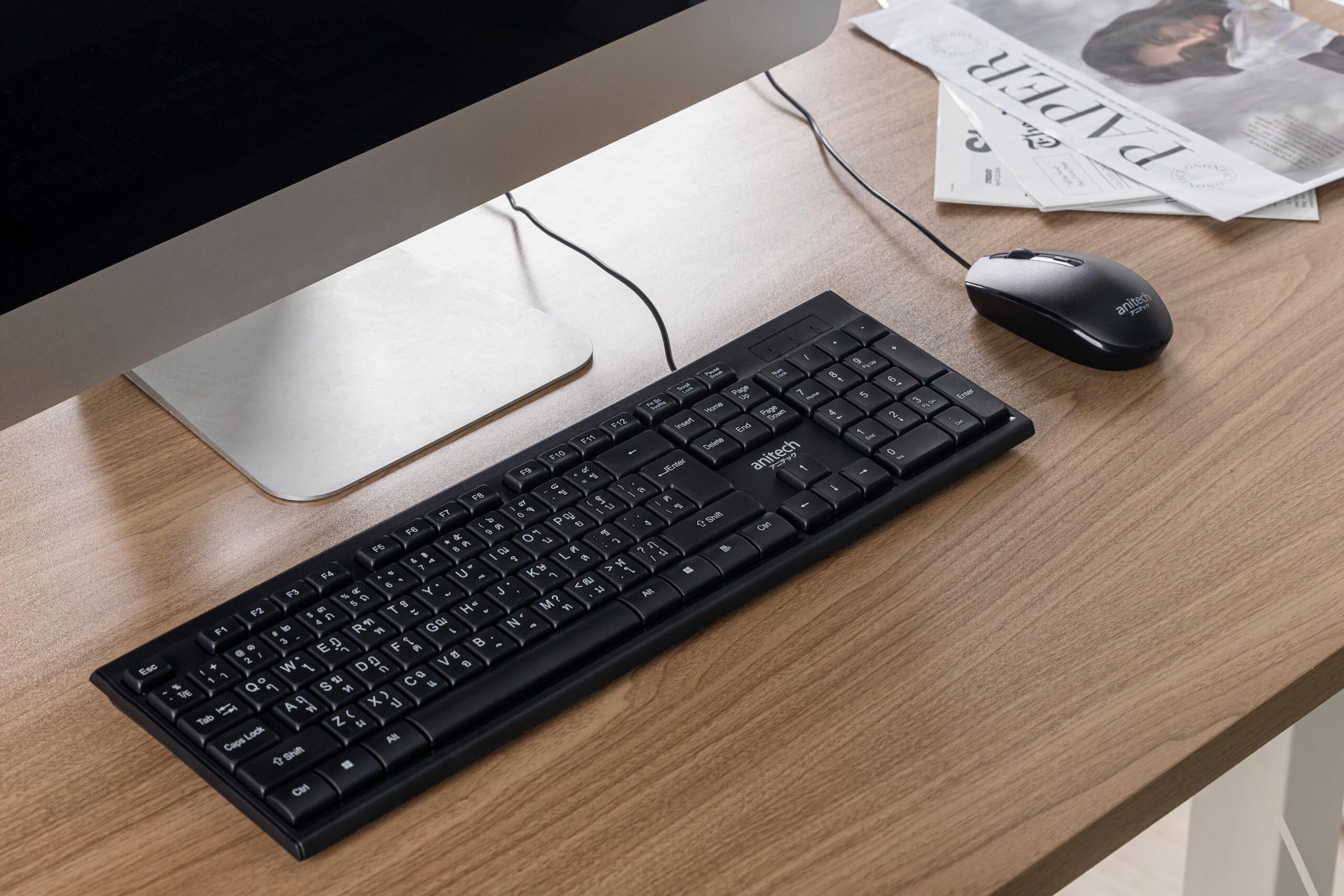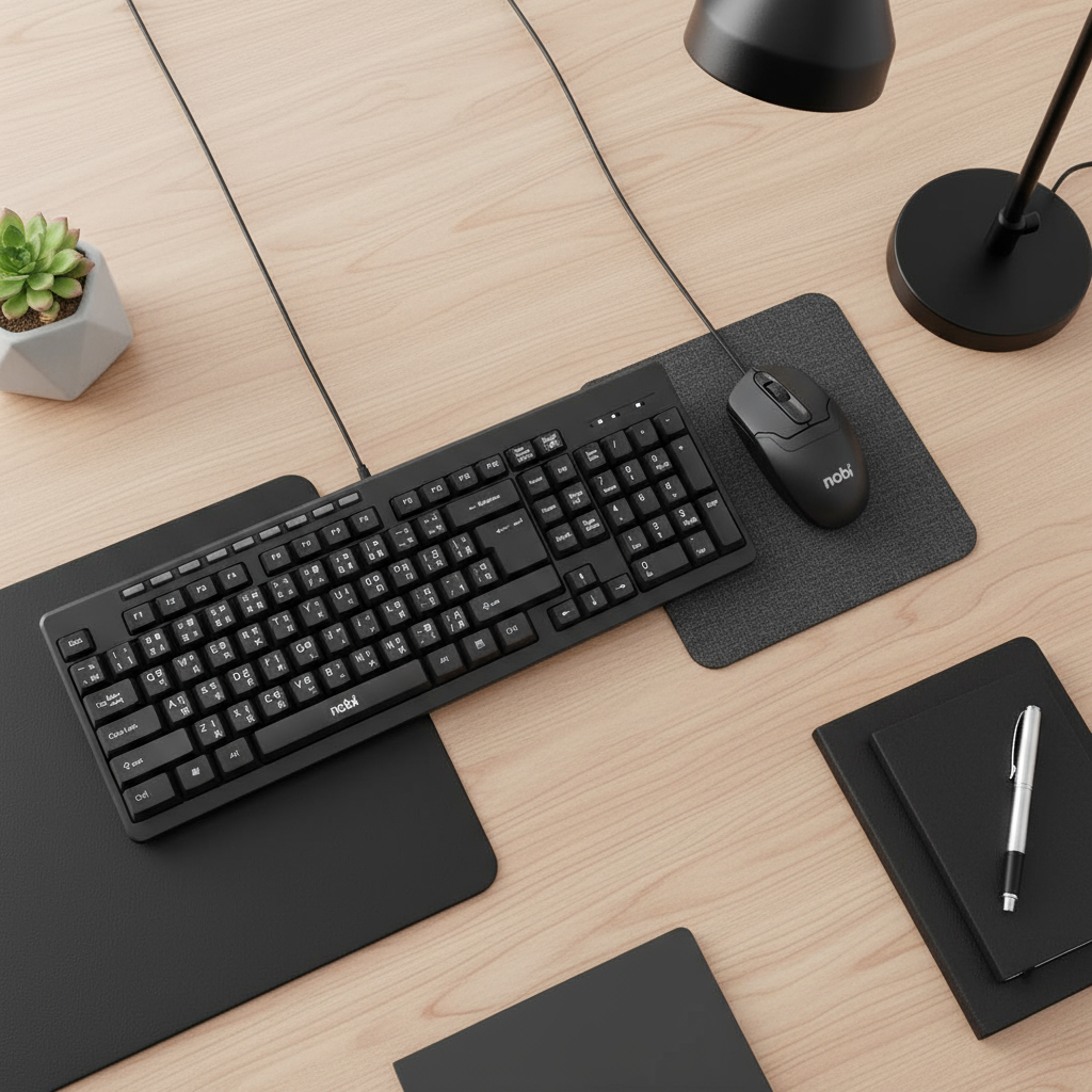 ชุดคีย์บอร์ดและเมาส์แบบมีสาย แป้นต่ำ สัมผัสนุ่ม สบายมือ