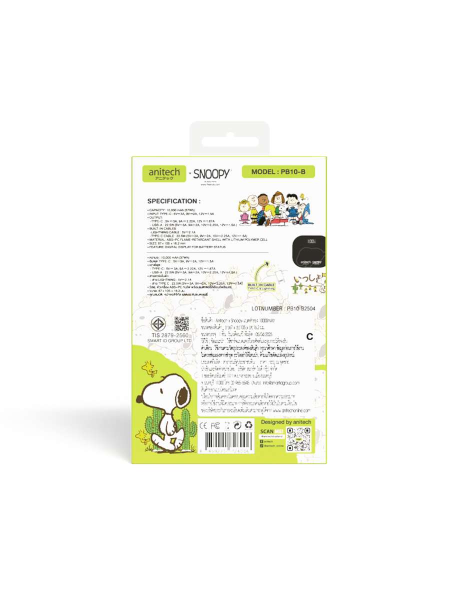 Anitech x Snoopy แบตสำรอง 10000mAh รุ่น PB10-B หน้าจอดิจิทัลแสดงระดับแบตเตอรี่