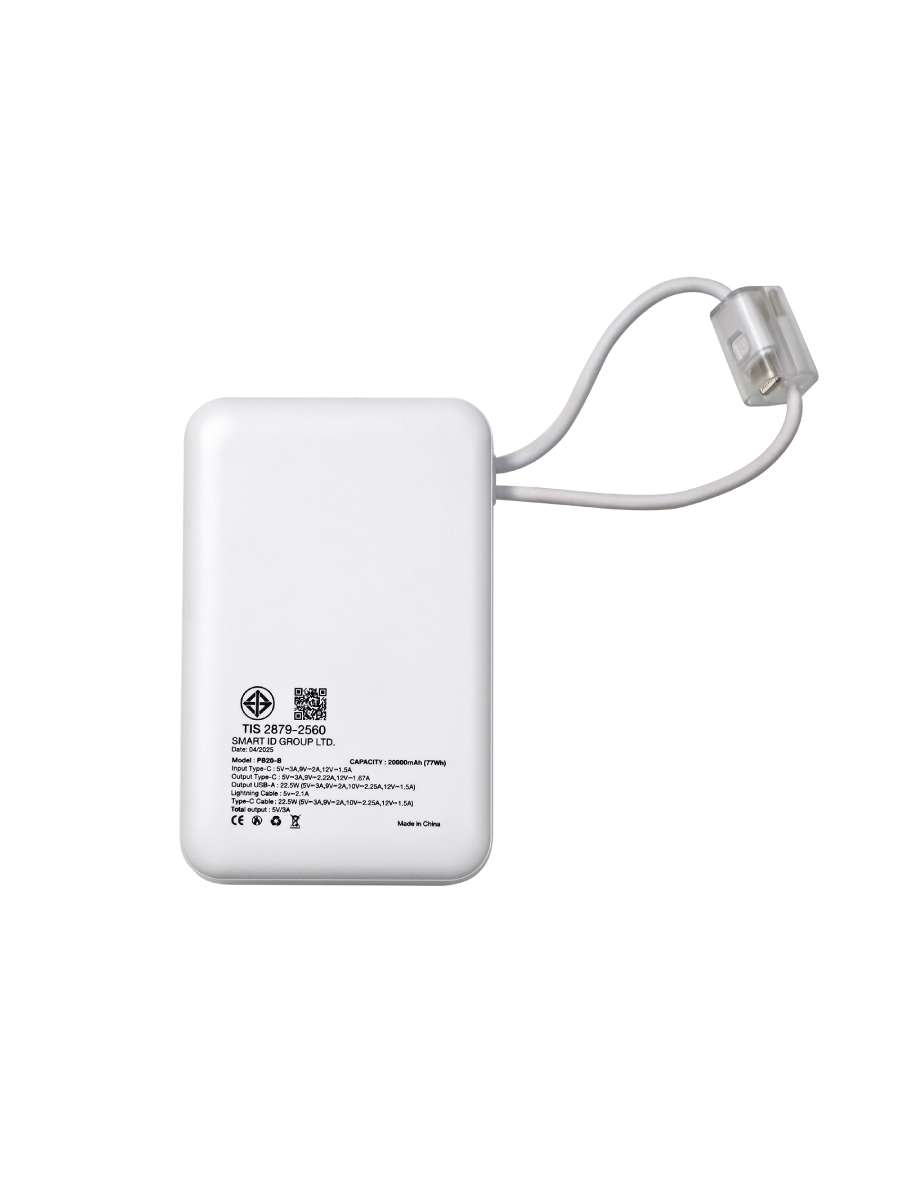 4. สายชาร์จในตัว:- สาย Lighting: 5V⎓2.1A- สาย Type-C: 22.5W (5V⎓3A, 9V⎓2A, 10V⎓2.25A, 12V⎓1.5A)