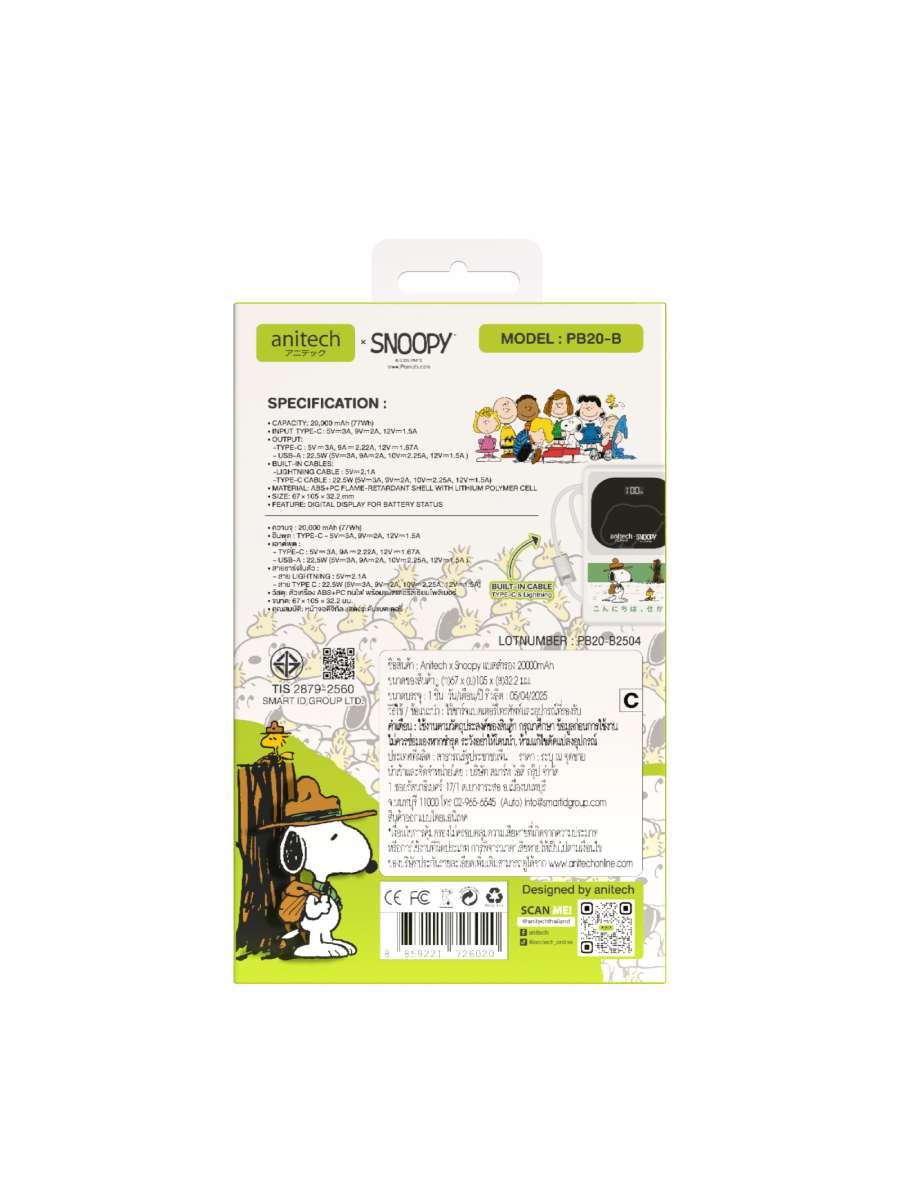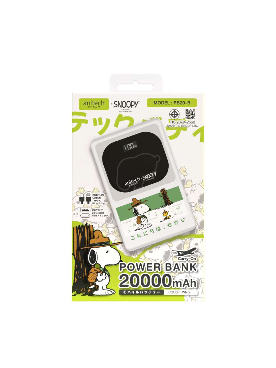 Anitech x Snoopy แบตสำรอง 20000mAh รุ่น PB20-B-WH หน้าจอดิจิทัลแสดงระดับแบตเตอรี่